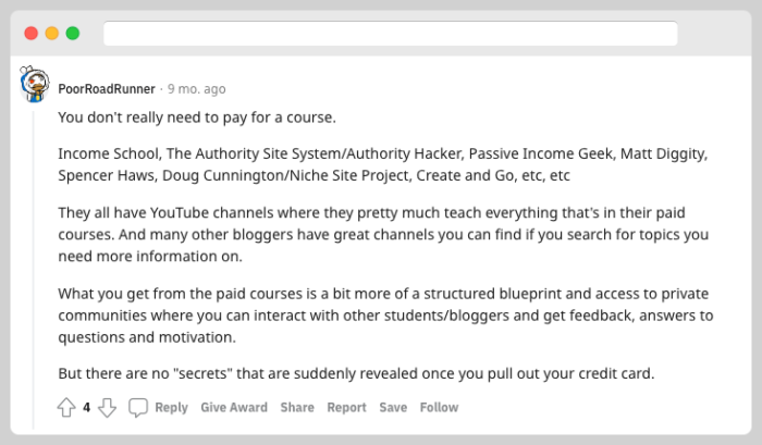 Sometimes what you are paying for when you buy blogging courses is access to a community.