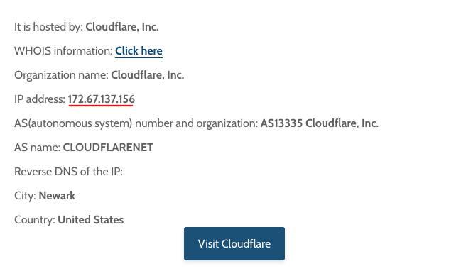 This is what you see when you try to know who my hosting provider is and what my server IP address is.