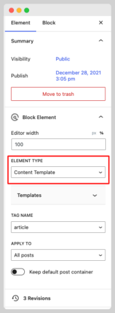 - Choose “block” from the Element Type Options