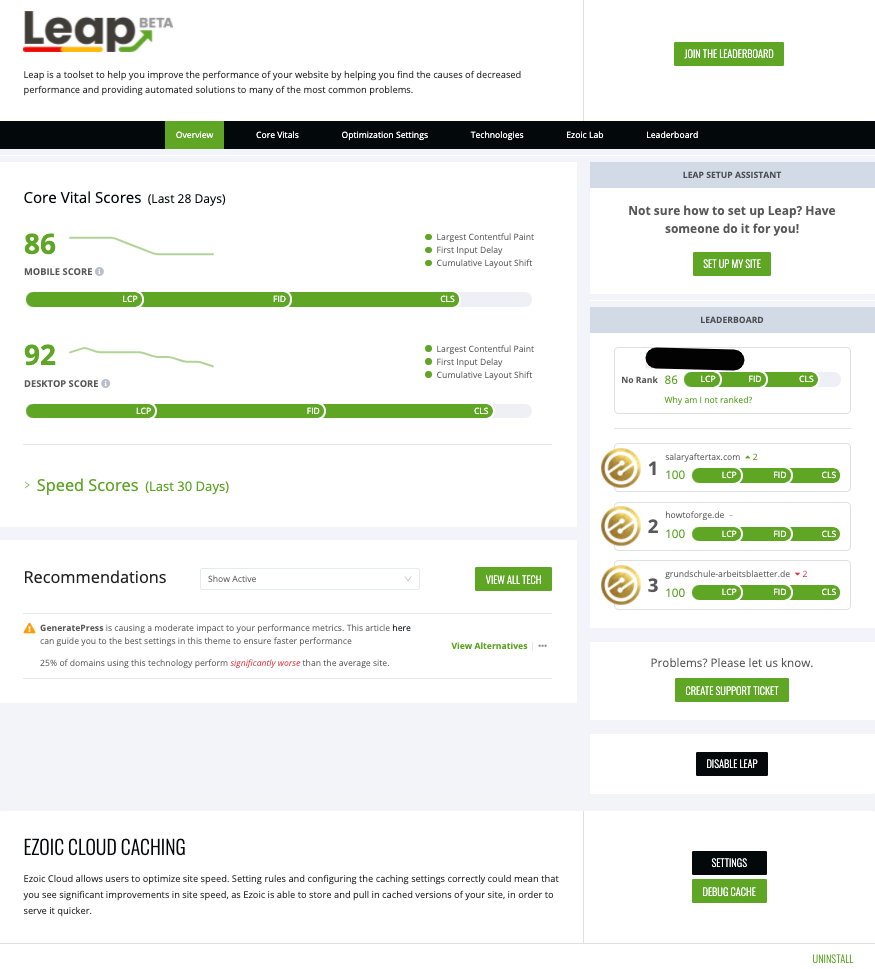 Speed issues were one of the reasons why I left Ezoic in 2020 and Leap was one of the reasons why I decided to give Ezoic another try in 2021 and 2022