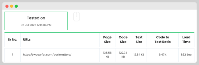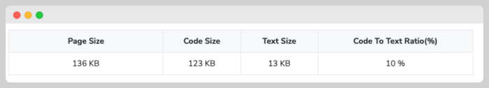 There are some free tools that can help you determine what the Code-to-Text Ratio is, one of those tools is Code to Text Ratio Checker by Small Seo Tools