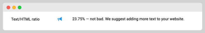 Test your competitors ranking above you and see if they are beating you with a lower, slightly superior, or far superior code-to-text ratio.