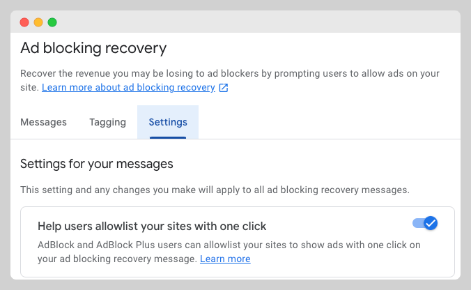 The tool works nicely because it can help whitelist your site on the most popular ad blockers with just one click.