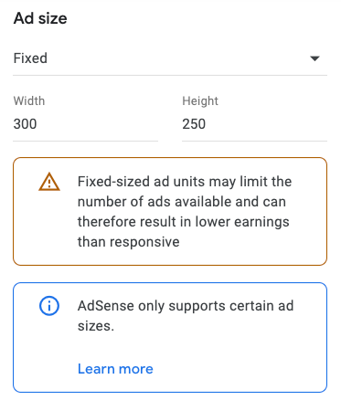 When the ad opens, go to “Ad Size” and choose “Fixed” instead of responsive option and set the height and width you want.