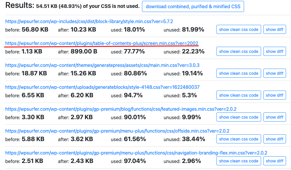 Since this is additional CSS, you won’t have any more render blocking warnings caused by the TOC+ plugin in speed tests.