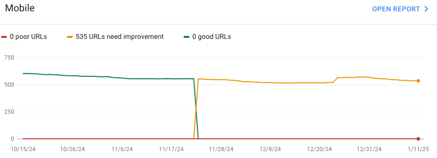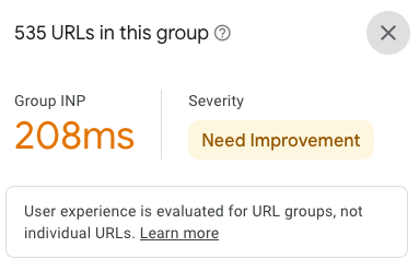 According to Google Search Console, I was getting 212 ms on Mobile (Group INP) and that should be less than 200ms if I want my sites to pass Core Web Vitals Now.