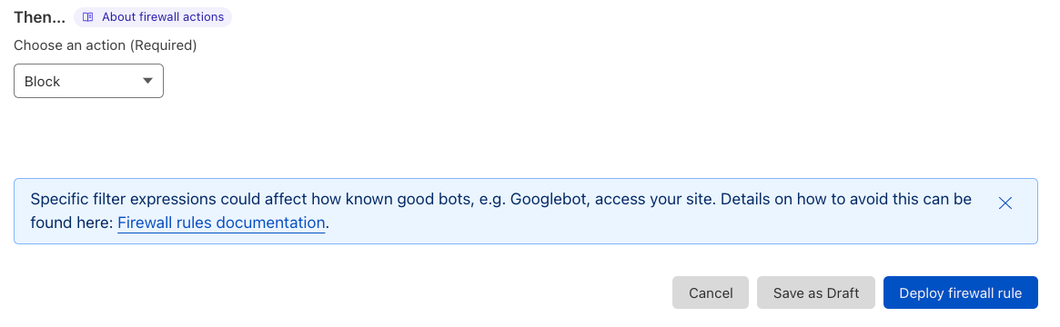 After that name your firewall whatever you want and choose these values for field and operator from the drop-down menu