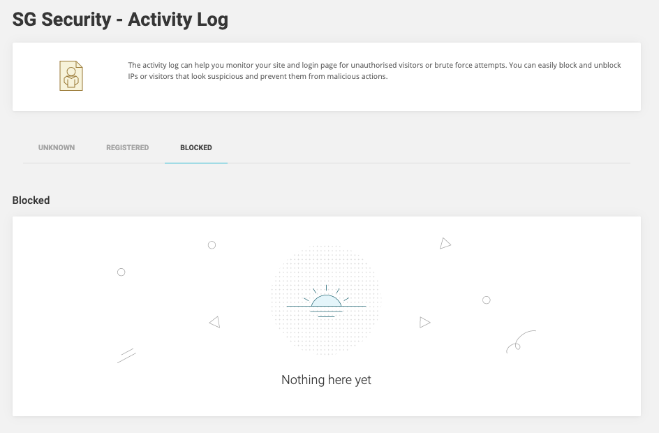 The activity log has the option to check the traffic coming to your site, users connected and users blocked.
