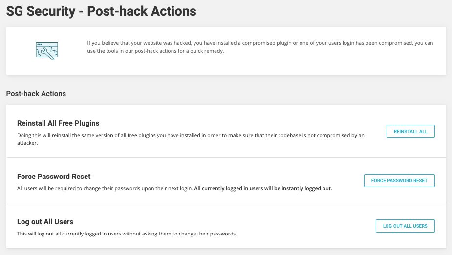 - Since I have a content site, I can reinstall the four to five plugins that I use in case one of my sites get hacked and reset my passwords easily, so post-hack actions section is not something I really need