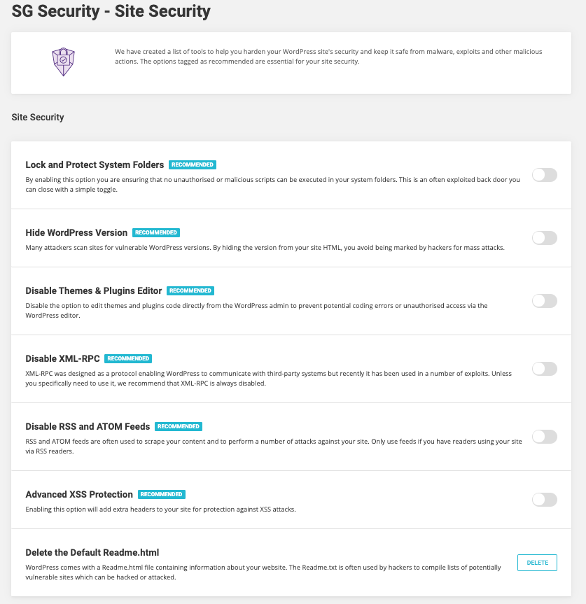 - I have implemented security at the application level and at the CDN level, so I don’t think my site will be more secure by toggling on the security features found site security section of the plugin.