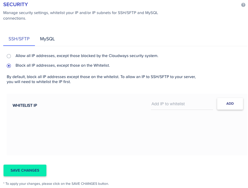 The Cloudways panel has the option to protect your Database, SFTP, and SSH.
