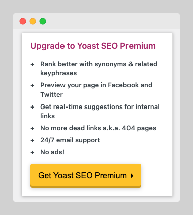 No matter where you are, or what you are trying to tweak, you can escape Yoast’s constant upselling.